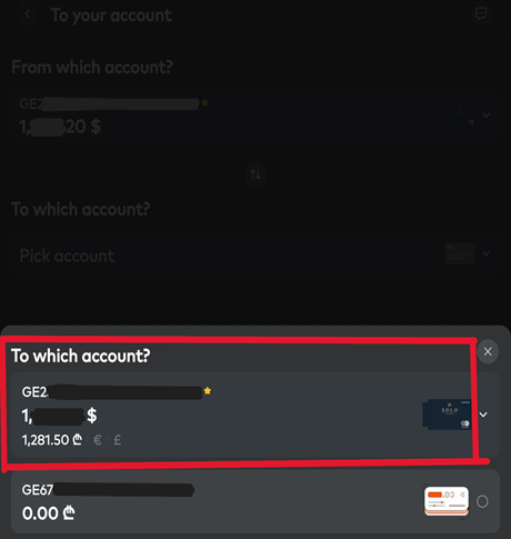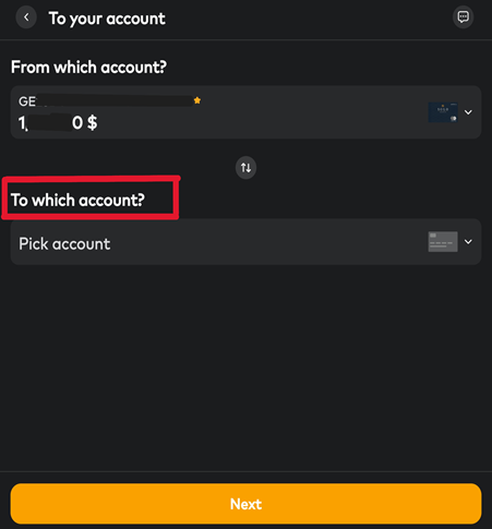 3) ‘ To which account? > Pick account ‘클릭